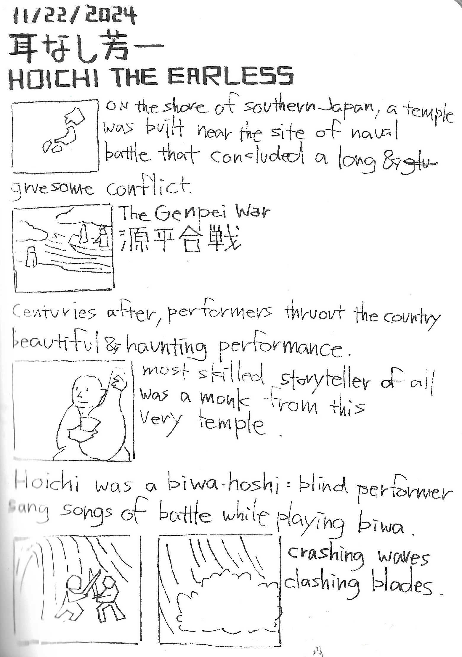 Hoichi the earless, Mimi-nashi-Hoichi is one of the most beloved Kwaidan stories in Japan. Hoichi is a blind and talented musician known for his “Heike story”. One day a samurai came knocking on his door, asking to come to play for a noble person. Hoichi follows the samurai and…